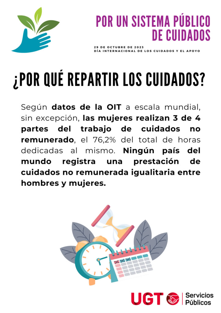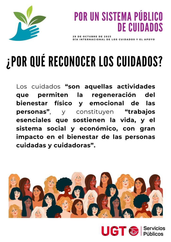 UGT Servicios Públicos Asturias con motivo del Día Internacional de los Cuidados y el Apoyo, 29 de octubre, recientemente proclamado por la Asamblea General de la Organización de las Naciones Unidas (ONU), nos sumamos a reconocer el papel de los cuidados en nuestra sociedad y poner en el calendario social y sindical esta fecha estratégica.