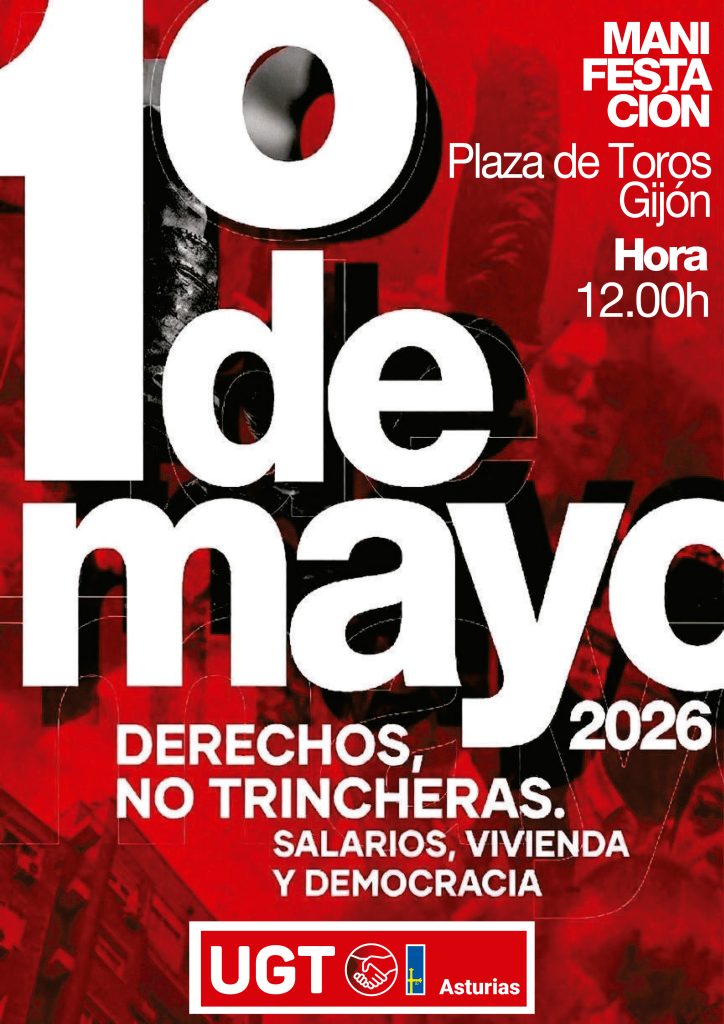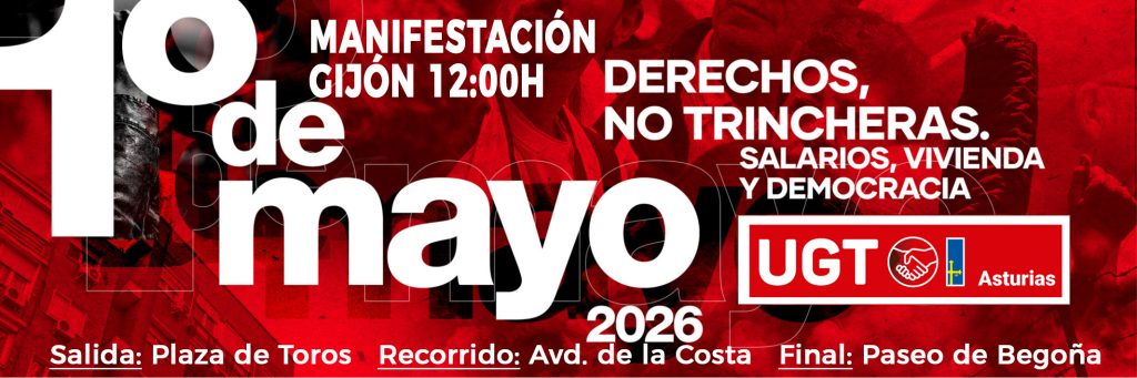 Bajo el lema «Derechos, no trincheras. Salarios, vivienda y democracia» este Primero de Mayo de 2026 te convocamos a la manifestación en Gijón a las 12:00 h.